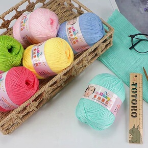 拜托了毛线5五股精梳棉牛奶棉宝宝毛线团DIY编织材...
