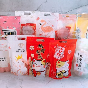 纯手工制作雪花酥牛轧糖饼干麻花糖果手提包装袋自封食...