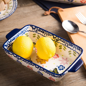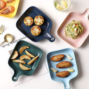 ins北欧陶瓷餐具 创意烤箱带手柄盘子家用西餐盘烘...