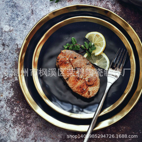 欧式金边西餐盘牛排盘北欧家用餐具套装菜盘碟子酒店用...