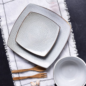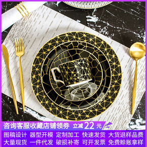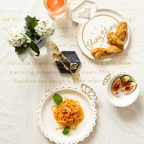 ins小清新陶瓷碗碟盘餐具套装家用金边沙拉碗西餐盘...