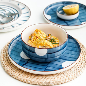日式创意手绘餐具套装牛排盘西餐盘陶瓷饭碗盘子家用和...
