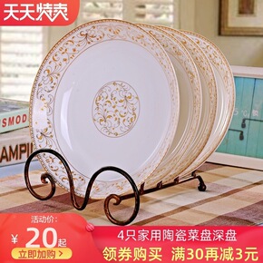 4只装景德镇家用陶瓷深盘8英寸欧式圆形菜盘子碗碟套...