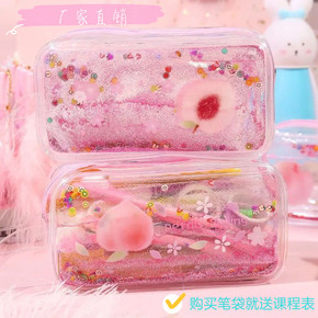创意牛油果可爱透明流沙笔袋 卡通桃子文具盒 大容量...