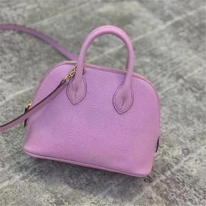 2022新款山羊纹头层皮mini迷你保龄球包简约贝...