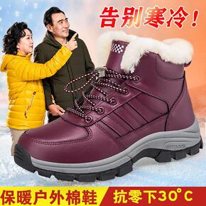冬季加绒保暖棉鞋潮韩男中帮防水时尚雪地靴女特大码高...