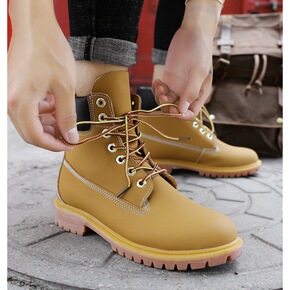 大黄靴男秋冬耐磨防滑高帮雪地靴女加绒防水马丁靴情侣...