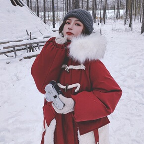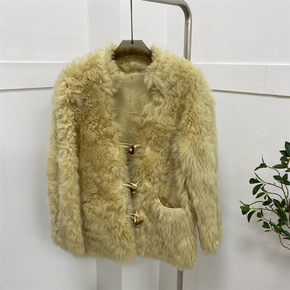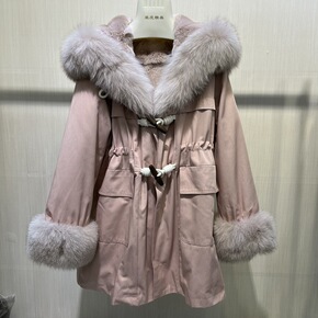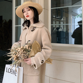 2021年【极地牛角扣】时尚芭莎皮毛一体外套新款女...