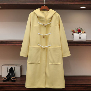 慵懒风中长款针织大衣牛角扣加厚连帽软糯羊毛针织开衫...