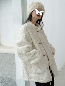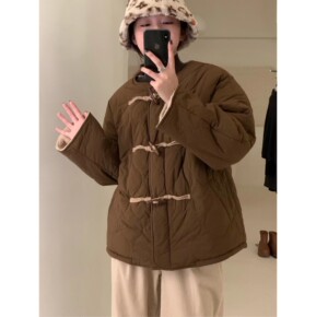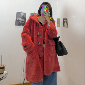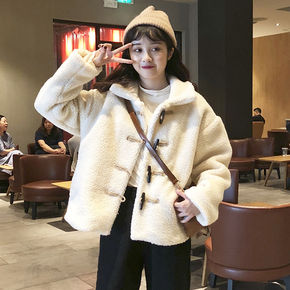 2022新款秋季韩版复古宽松牛角扣加厚保暖仿羊羔毛...