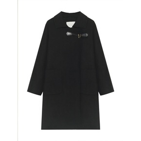 黑色毛呢外套女加厚秋冬年新款气质百搭过膝牛角扣双面...