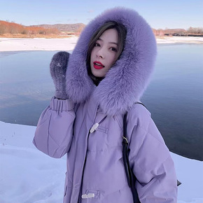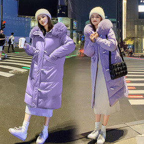 女装2021年中长款羽绒棉服加厚外套东大门大毛领过...