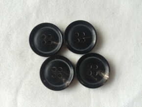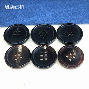 供应20mm倒边四眼黑色真牛角扣犀牛角扣高档风衣纽...