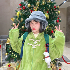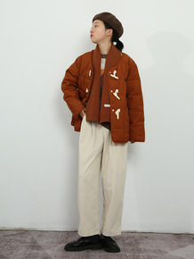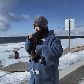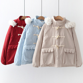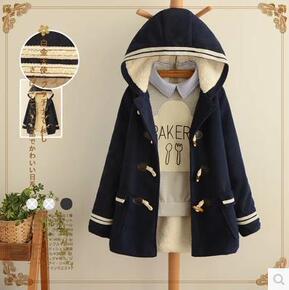 日系森女系 海军风牛角扣加绒加厚保暖棉服 2019...