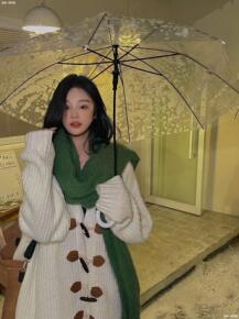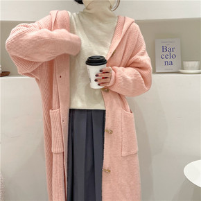 2021韩版冬装新款长款针织衫外套 纯色牛角扣宽松...