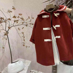 女童毛呢外套牛角扣洋气呢子大衣202秋冬新款加厚保...