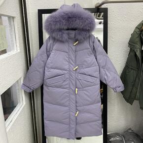 牛角扣白鸭绒羽绒服女2021年冬季新款时尚洋气面包...