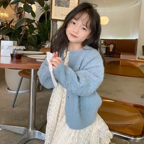 女童韩版牛角扣毛衣外套宝宝202秋冬装新款儿童雾霾...