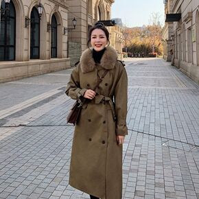 实拍现货2022秋冬新款韩版皮毛一体减龄牛角扣中长...