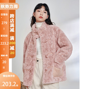OTSD牛角扣羊羔毛外套女2021冬款宽松加厚粉色...