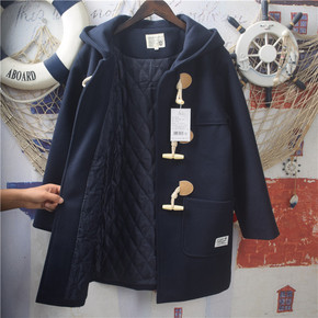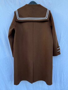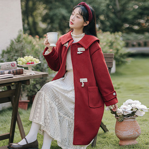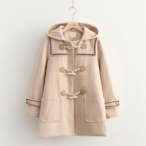 纯色海军领双面羊毛大衣气质减龄学院风牛角扣韩版中长...