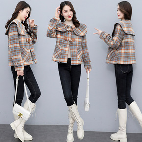 学院风小个子毛呢外套女2021秋冬新款休闲百搭牛角...