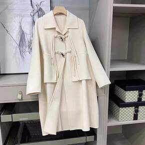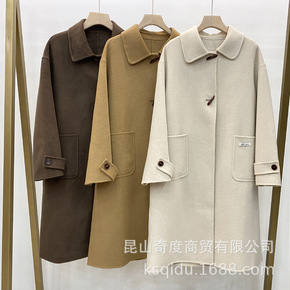 中长款加厚牛角扣外套女2021秋冬仿貂绒双面呢韩版...