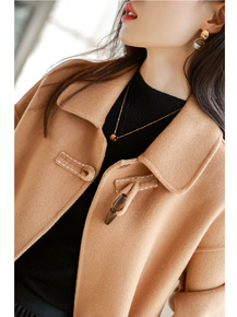双面羊绒牛角扣大衣女2021年秋冬季新款小个子中长...