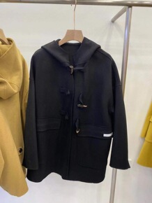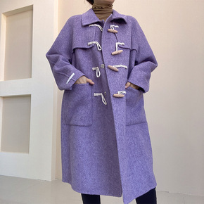 21冬拼接款重工牛角扣毛呢外套实拍韩版女宽松中长款...