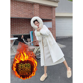 驼色加棉加厚毛呢外套女秋冬季2021新款小个子日系...