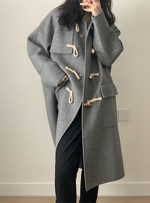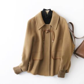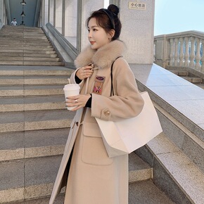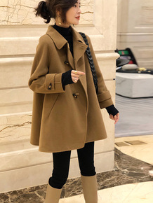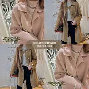 2021年秋冬新款袖子牛角羊毛双面呢大衣 时尚中长...