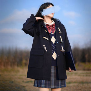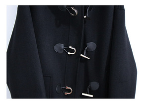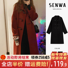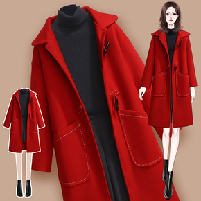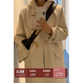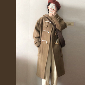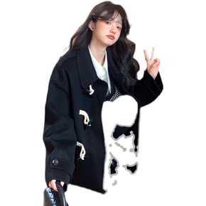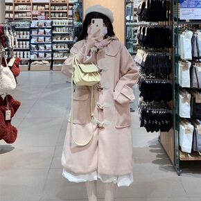 牛角扣毛呢外套女秋冬季2021年新款中长款连帽学生...