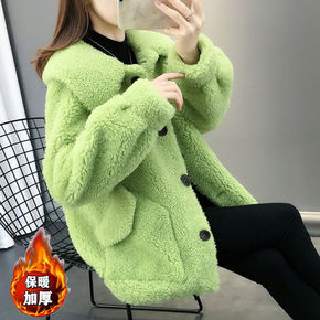 【加绒加厚】羊羔毛外套女2021秋冬季新款颗粒绒韩...