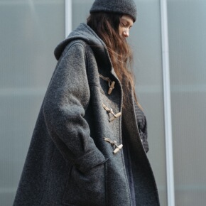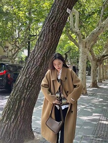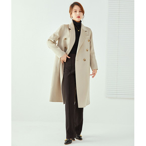 M家经典101801双排牛角扣10羊绒廓形大衣...