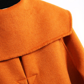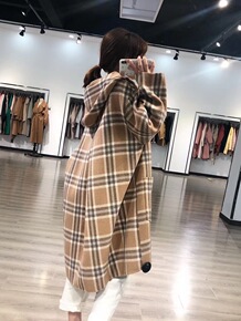 新款双面尼大衣女带帽斗篷纯呢外套中长款宽松百搭*...