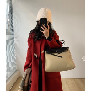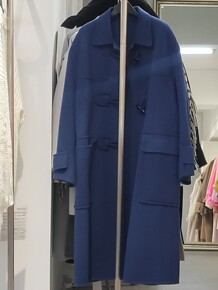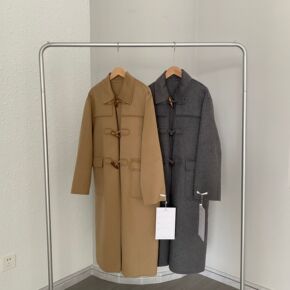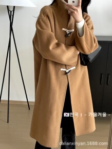 大连欣妍2022年冬季新品三粒牛角扣手工缝制长款毛...