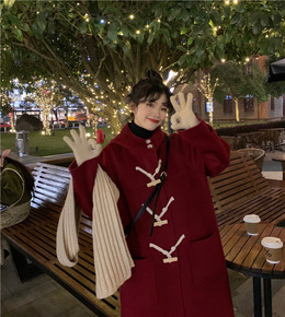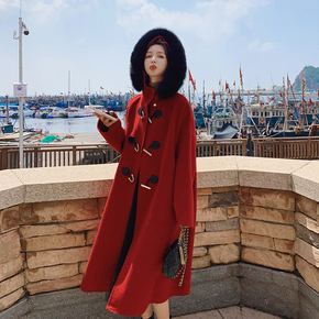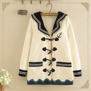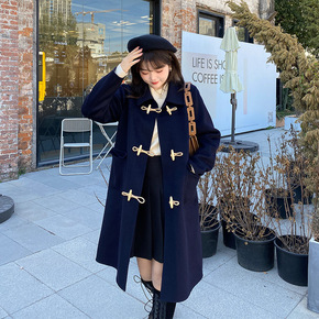 可爱学生装牛角扣大衣2019冬装新款海军风宽松中长...