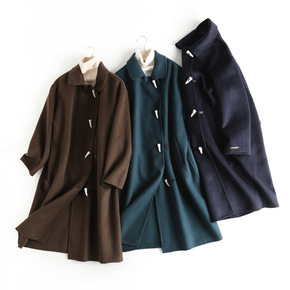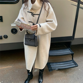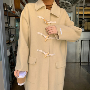 2021爆款新款双面羊毛大衣中长款牛角扣韩版宽松毛...