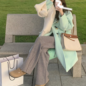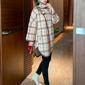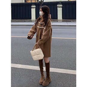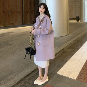 2021年冬季新款韩版中长款斗篷毛呢外套连帽宽松保...