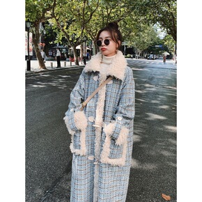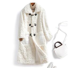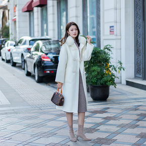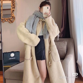 厚实保暖韩国泫雅2021冬牛角扣宽松中长款羊羔毛绒...
