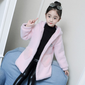 女童洋气外套秋冬装2021新款水貂绒加厚中长款韩版...