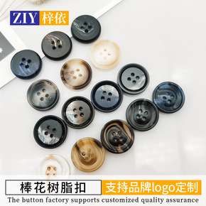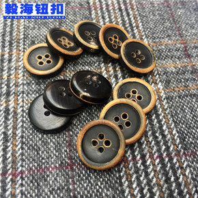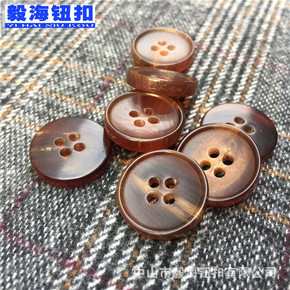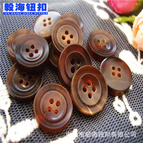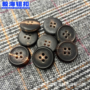 现货四眼仿牛角树脂纽扣棒花纹钮扣男女毛呢西装休闲风...