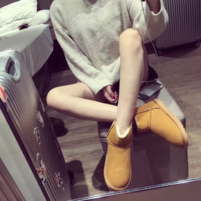 5854雪地靴男女牛皮防水棉靴冬季外贸低筒平跟镇江...