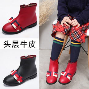 儿童雪地靴2021秋冬季新款真皮女童靴蝴蝶结公主靴...