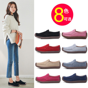 鞋子女反绒皮厚底平跟休闲鞋真皮软底防滑妈妈孕妇大码...
