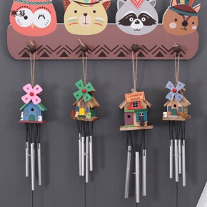 实木小房子金属管音乐风铃挂饰创意日式女生卧室生日礼...