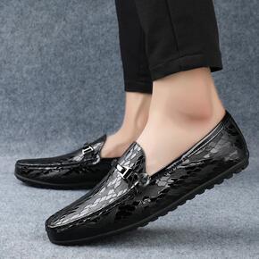 男鞋春季软面皮豆豆鞋男真皮黑色软底驾车潮鞋男士商务...