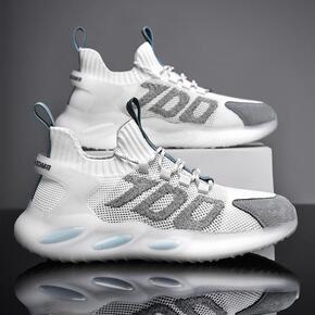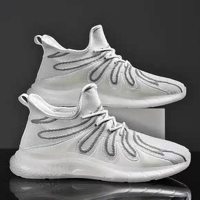 飞织透气超轻气垫运动跑鞋高弹休闲鞋科技减震镂空网面...