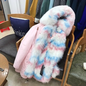 派克服女中长款时尚外套冬装皮草貉子狐狸毛领獭兔毛内...