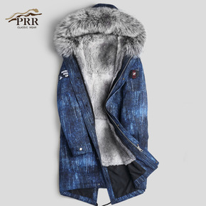 派克服男2021新款冬獭兔毛内胆狐狸毛皮草大衣中长...